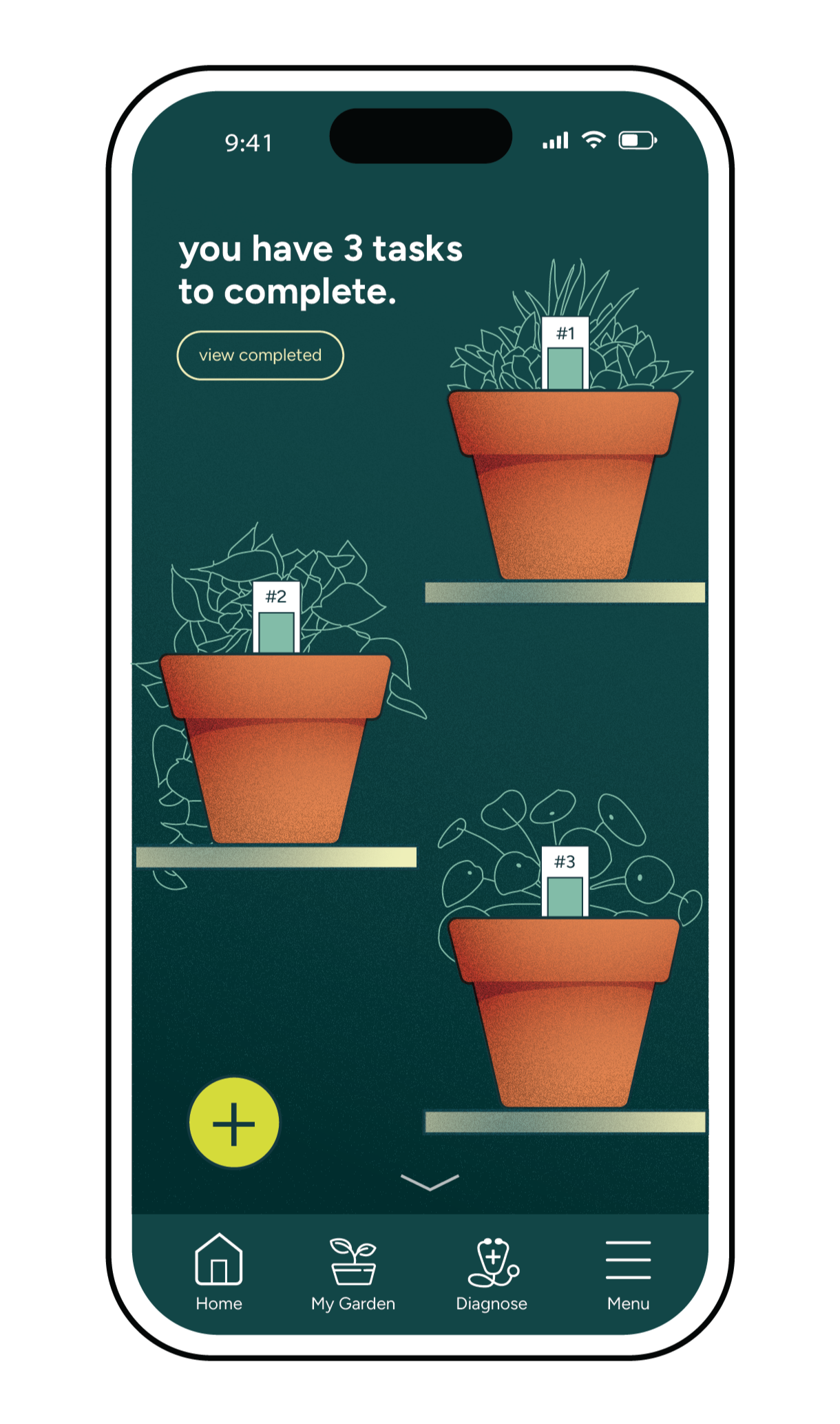 PlantGenie is a conceptual brand that combines smart technology with intuitive design to simplify plant care. In this project I explored the creation of a seamless app interface designed to work with a smart monitoring spike inserted into the soil of a plant pot. The spike communicates with the PlantGenie app, giving gardeners of all levels real-time insights about their plant’s health and guidance to keep them thriving. I leaned into the aspects of real-world gardening to deliver an app experience that is both attractive and useful to the target audience.
